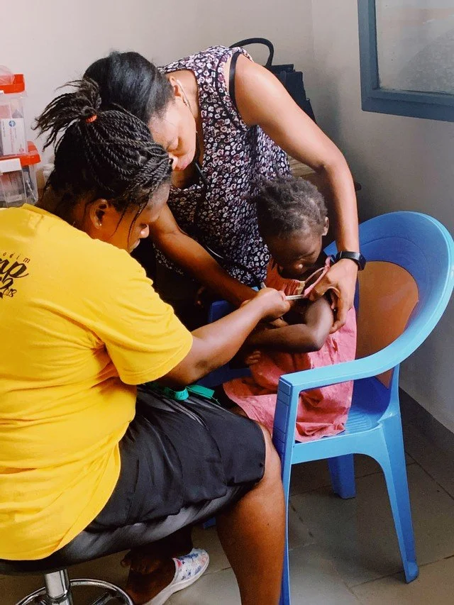Once a month, all the kiddos head down to the clinic where our physician, nurse, and lab technician are waiting. One by one, each child heads over to our nurse, who takes their vitals; height, weight, temperature, oxygen levels, etc. All the basics that inform us of how our kids are growing and developing and that their bodies are functioning well. Next, our nurse moves on to tracking any health or related psychological behaviors like bed-wetting, fatigue, or brief attention span. For our little ones five and under, she uses our MUAC bands around their arms to ensure they're at an excellent nutritional standing. Otherwise (you guys know the drill), it's time for Plumpy'Nut!